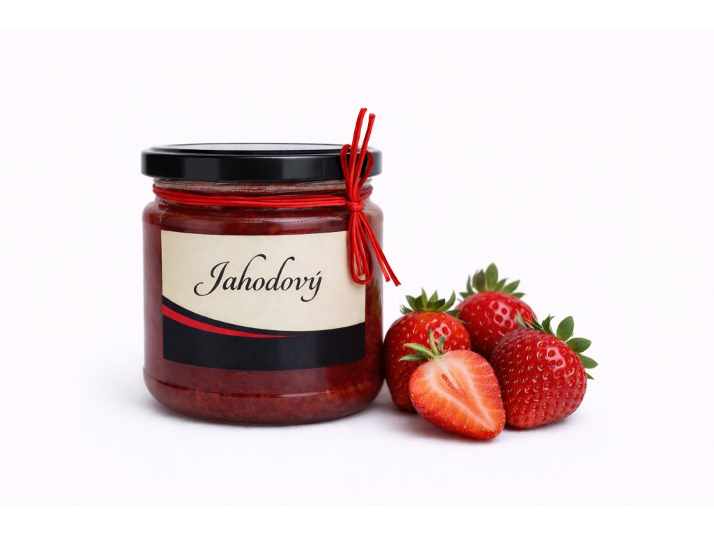 Složení: jahody 77 %, cukr 23 %, citronová šťáva, přírodní pektin